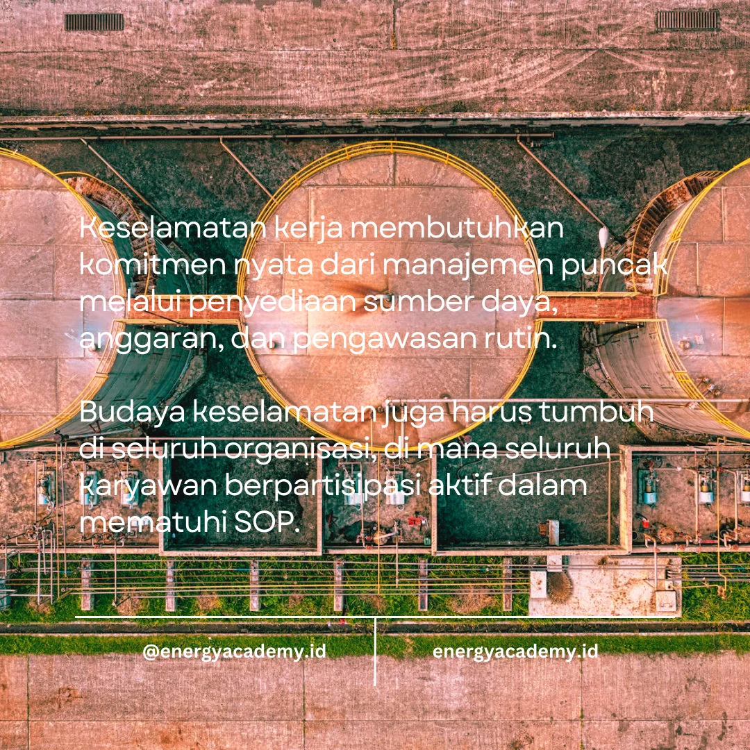 Keselamatan kerja bukan hanya tanggung jawab departemen HSE. Manajemen puncak harus menunjukkan komitmen nyata. Komitmen ini terwujud melalui penyediaan sumber daya, alokasi anggaran, pengawasan rutin, serta dukungan penuh terhadap penghentian pekerjaan (Stop Work Authority) jika situasi dianggap tidak aman.